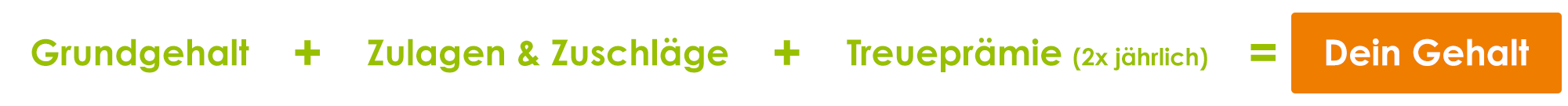 Dazu kommen zweimal im Jahr die sog. Treueprämien: Einmal im Juli (500 Euro) und einmal im November (70% vom Grundgehalt).